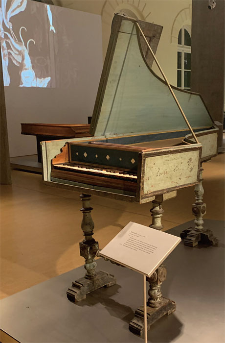 클라비코드는 뚜껑을 덮으면 마치 화장대나 서랍장 같은 모양으로 하프시코드보다 작고 가격도 저렴하여 18세기 가정에서 사용하는 가장 중요한 악기가 되었습니다. 클라비코드는 하프시코드와 비슷한 원리로 작동하지만, 나무로 된 건반(key)을 누르면 건반에 연결된 탄젠트(tangent)라고 하는 작은 놋쇠가 ‘현의 위쪽을 살짝 건드려’ 소리를 내는 악기입니다. 이 탄젠트가 줄을 건드린 이후에도 제자리로 돌아가지 않고 줄에 붙어 계속 진동시킴으로써 소리가 지속됩니다.